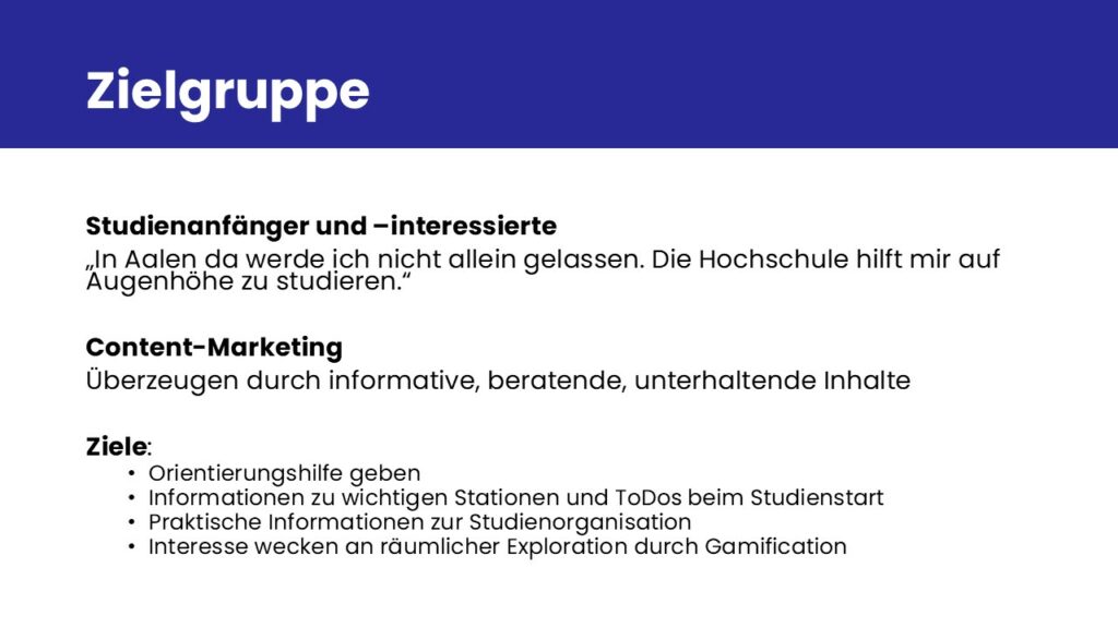 Hierbei wurden wesentliche Ziele des Projekts erarbeitet.